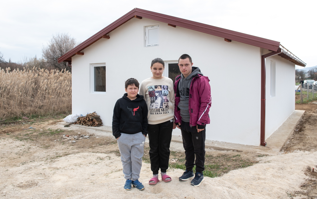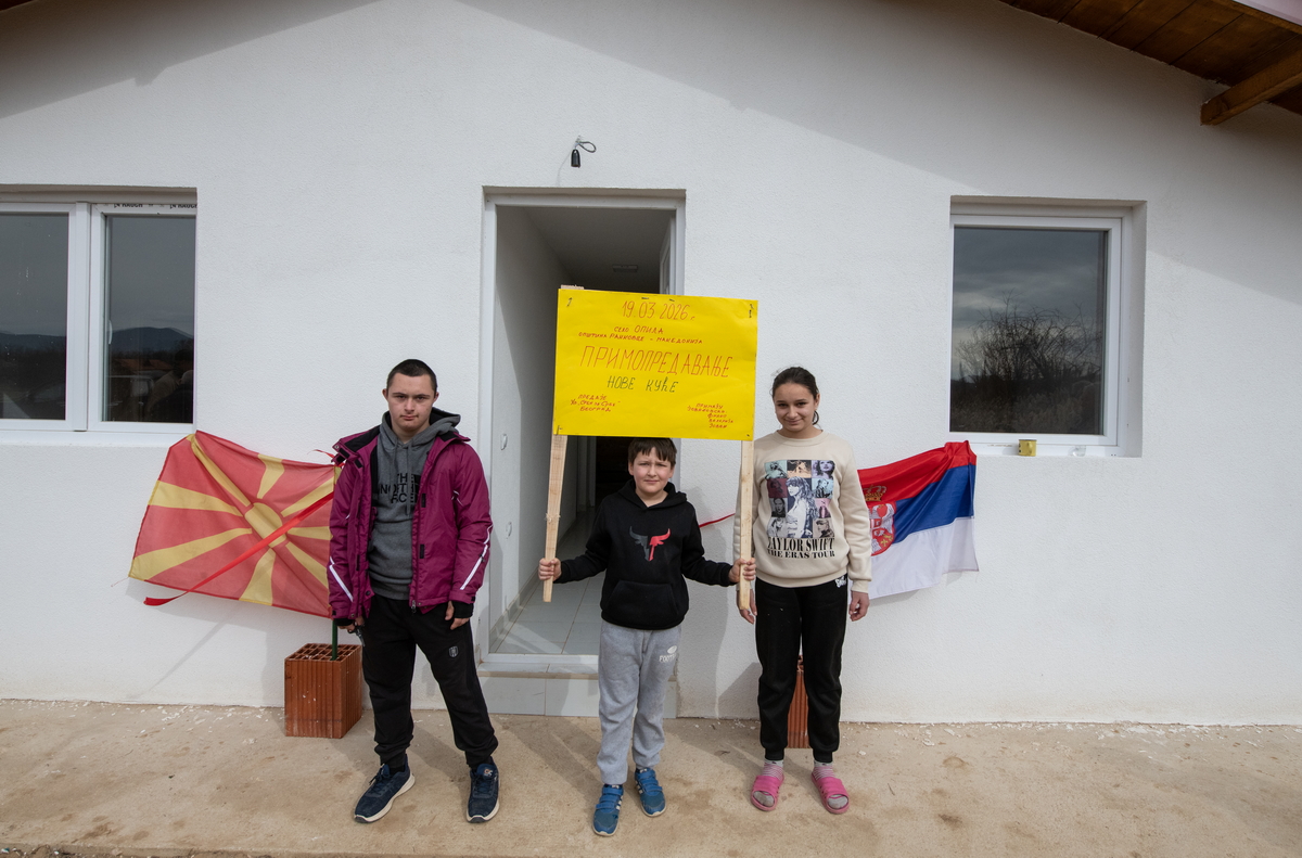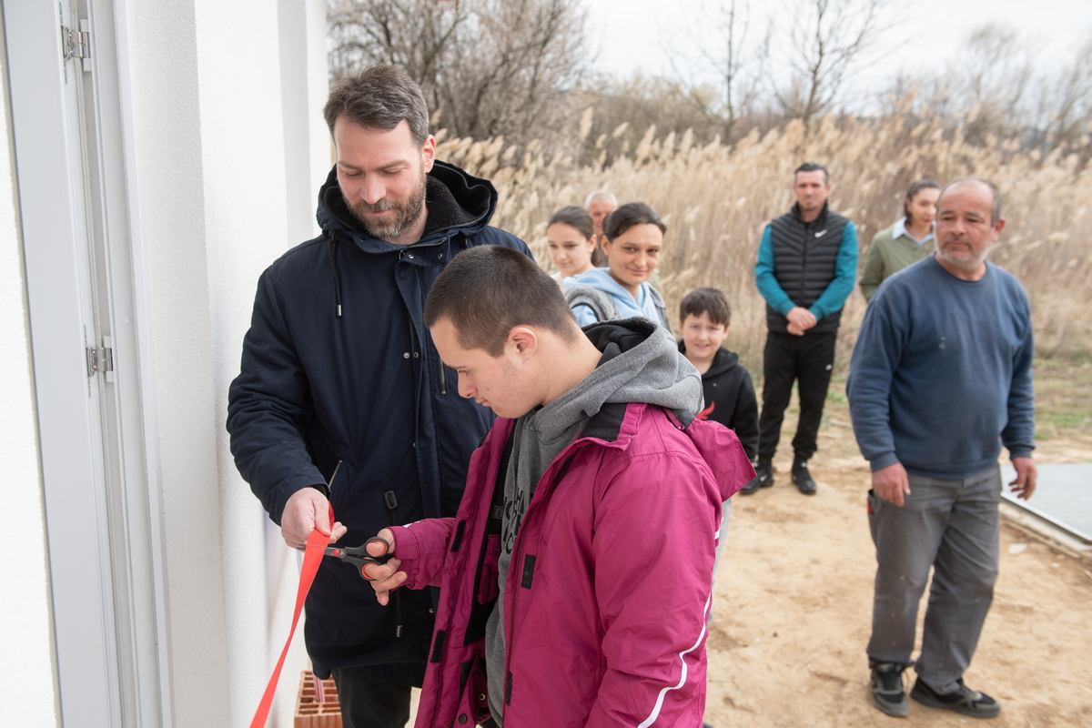 Заједно са Филипом, дечаком са посебним потребама који има Даунов синдром и који већи део године проводи ван породичног дома, у интернату за децу са сличним потешкоћама, радосно су стајали испред своје новоизграђене куће у селу Опила, а која је дар наше организације њима и њиховим родитељима.
