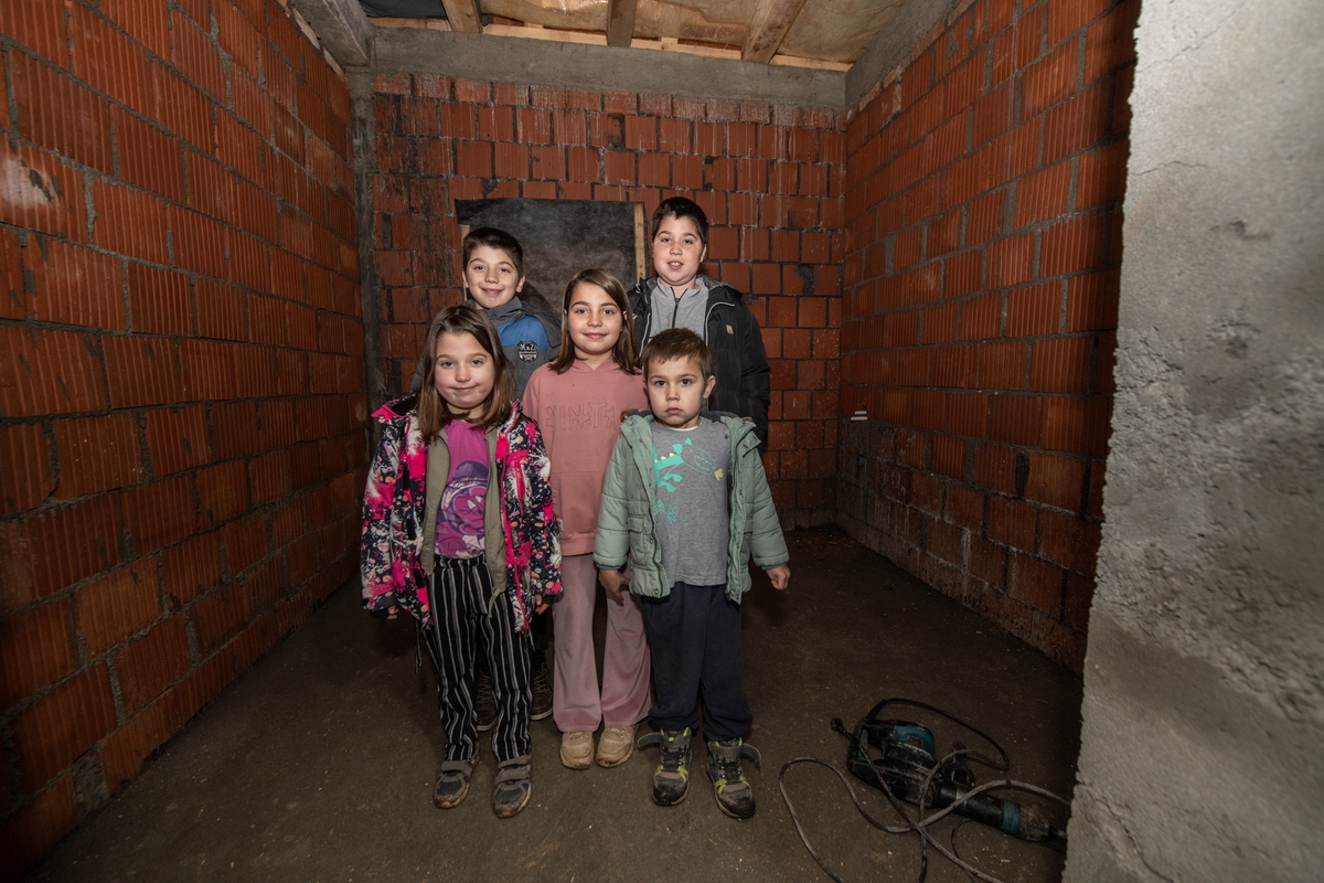 И сада нас је дочекало петоро малишана, са још већим осмесима и расположењем. Михајло (11), Матеја (10), Валентина (9), Анђела (7) и Никола (4) су највећа узданица и понос својим родитељима Бојану и Јелени.